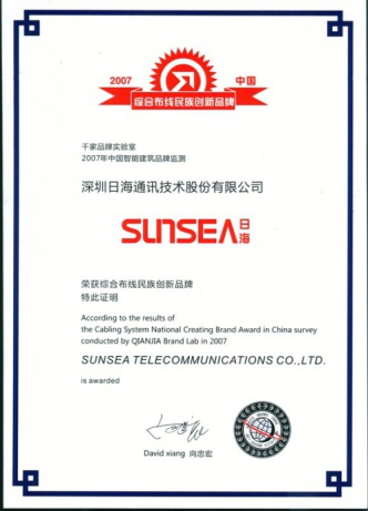 2007年11月29日~30日,yabo亚博公司智能综合布线受邀前往上海光大会展中心酒店,参加由千家网筹办的“2007年第八届中国国际建筑智能化峰会暨颁奖典礼”,获得了“布线民族创新品牌”特别奖项。